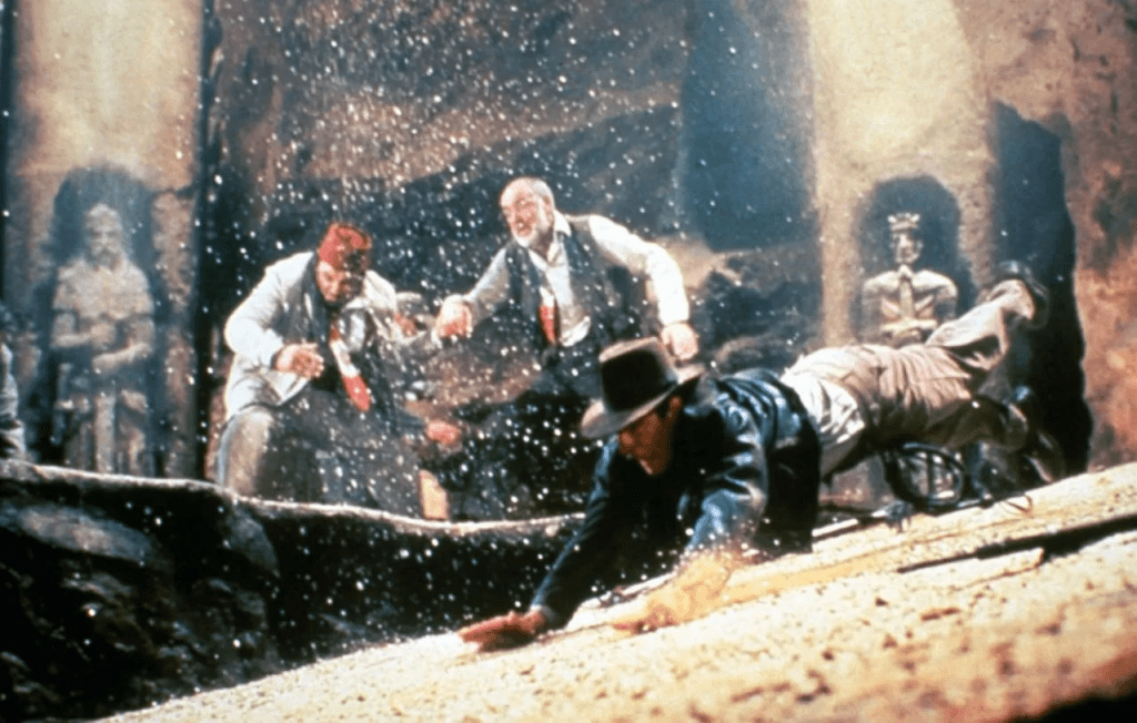 Перед тем, как достичь Грааля, Индиане Джонсу приходится пройти в храме полосу препятствий, включающую в себя спрятанные лезвия, своеобразную игру в «классики» и невидимый мост.