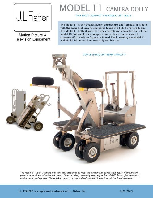 J.L. Fisher изначально была производителем микрофонных «журавлей», но в начале 1960-х годов компания представила свою операторскую тележку Model 8 (ее назвали так, потому что до нее компания выпускала семь вариаций «журавлей»). Это была трехколесная тележка с гидравлической штангой. Модели Fisher 9, 10 и 11 (последняя появилась в 1973 году, а более компактная Model 11 – в 1995) до сих пор доступны.